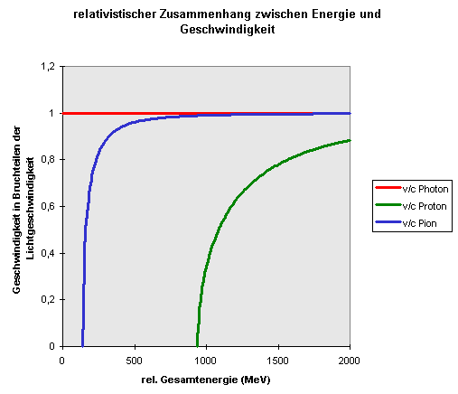 bei zunehmender Energie immer mehr der Lichtgeschwindigkeit,